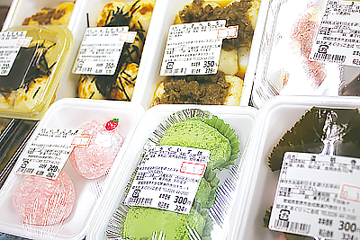 定番のあんこやずんだの他、しょうが、なっとう、えびなど、どれもお手頃なのが魅力。いろいろ買ったシェアしたい。人気のため午前中で売り切れる場合も。