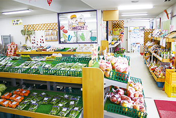 ▲朝採り野菜や地場産品が並ぶ店内☆