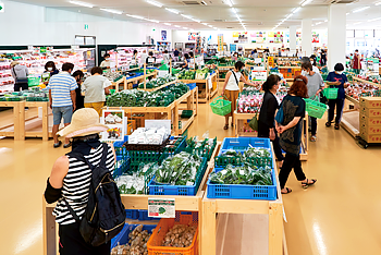 約200坪と広いフロアには、青果売り場の他にも、お米、お肉、生花、加工食品、弁当やお惣菜、パンやスイーツの売り場が並び、いずれもかなり充実した品揃え。また、多様な気候風土を反映した個性豊かな6次化オリジナル商品は、他店にはない圧巻のラインナップで、驚きと発見の連続。さらに、店内に調理施設まで備えた鮮魚売り場には、三陸の海の幸はもちろん、お刺身の盛り合わせまであって、これはもう、一度行ったら毎日でも通いたくなってしまうのはまちがいなし。